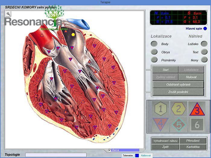 During this procedure 6 various states of cellular energy and their nearest tissues are displayed on as virtual models (on the display), using the special marker system. This makes possible for the specialist to identified problematic areas for a later detailed examination.